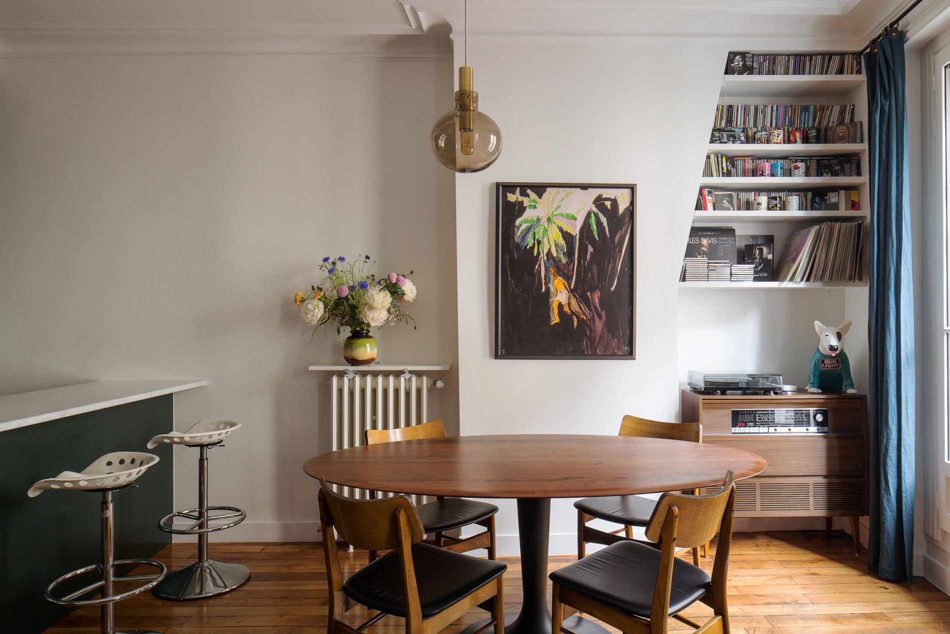 Dans un immeuble haussmannien typique, cet appartement de 78m² semblait avoir été figé dans le temps pendant plusieurs décennies. Derrière les strates successives de rénovations malheureuses et l’état d’insalubrité avancé, nous avons su déceler le potentiel extraordinaire des lieux.