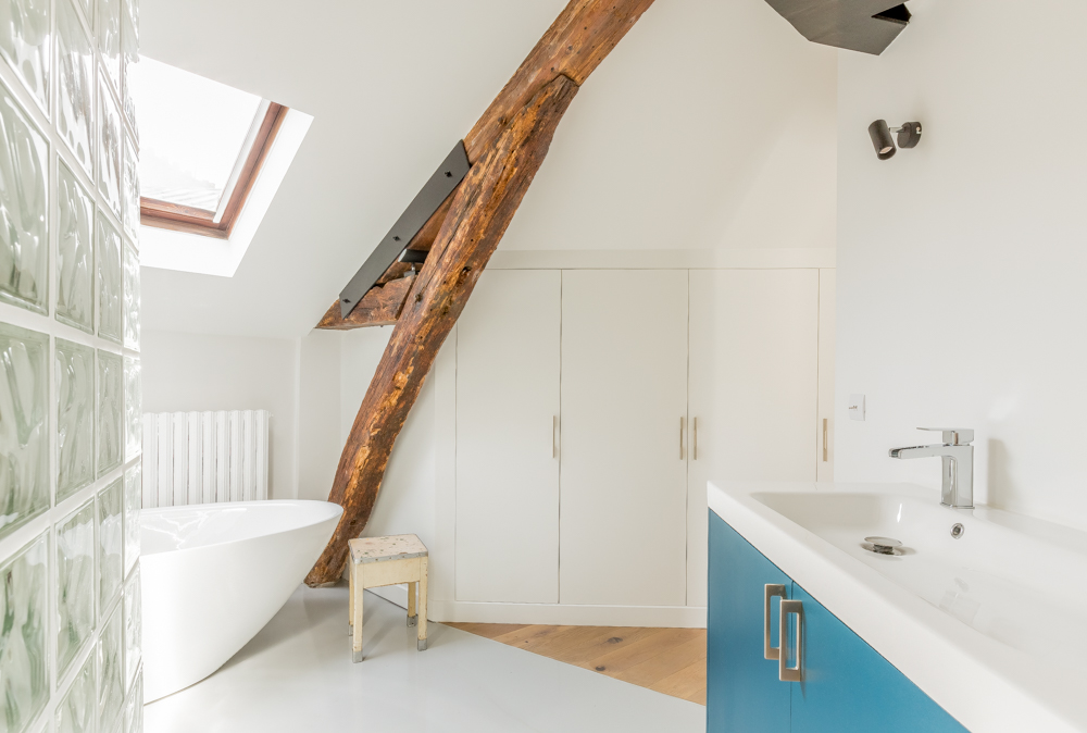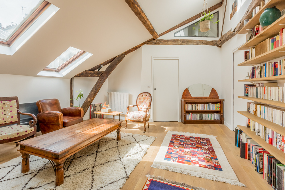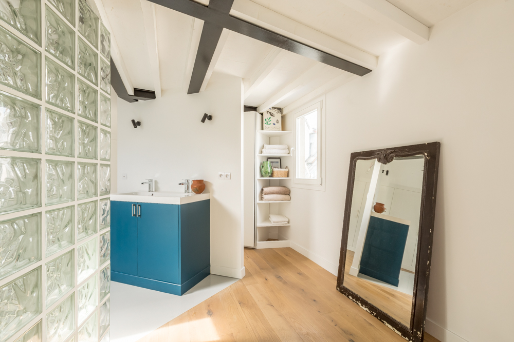La transformation de cet appartement de 63m² Carrez démontre comment la conquête des combles peut métamorphoser un espace de vie. En exploitant la verticalité, nous avons créé un volume généreux baigné de lumière, où la hauteur sous plafond devient un élément architectural majeur.