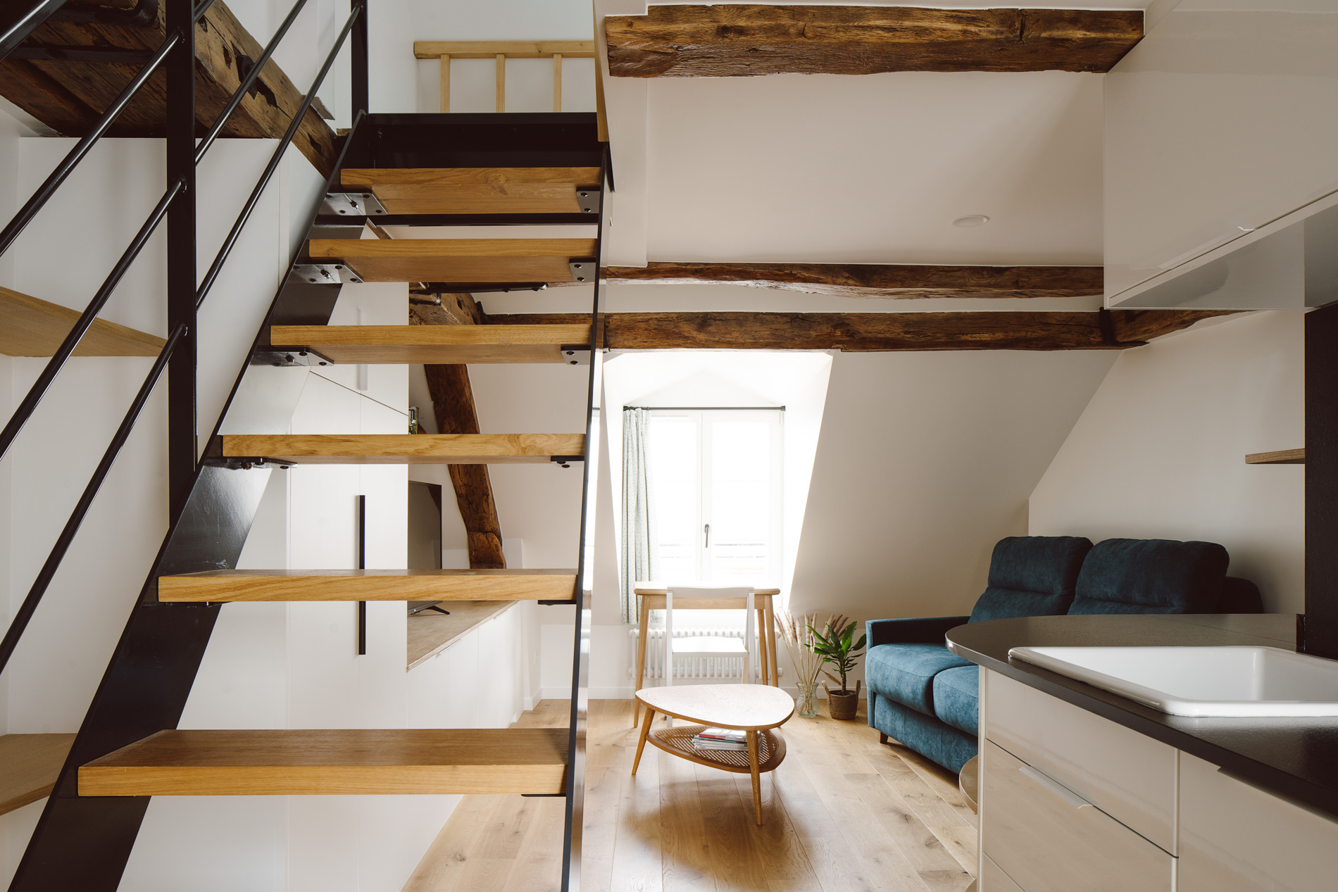Niché dans le quartier animé du Panthéon à Paris, Le Prince est un studio étudiant pensé comme un nid douillet en hauteur. Cette rénovation prouve qu’un petit espace peut devenir un lieu de vie complet où chaque fonction trouve naturellement sa place.