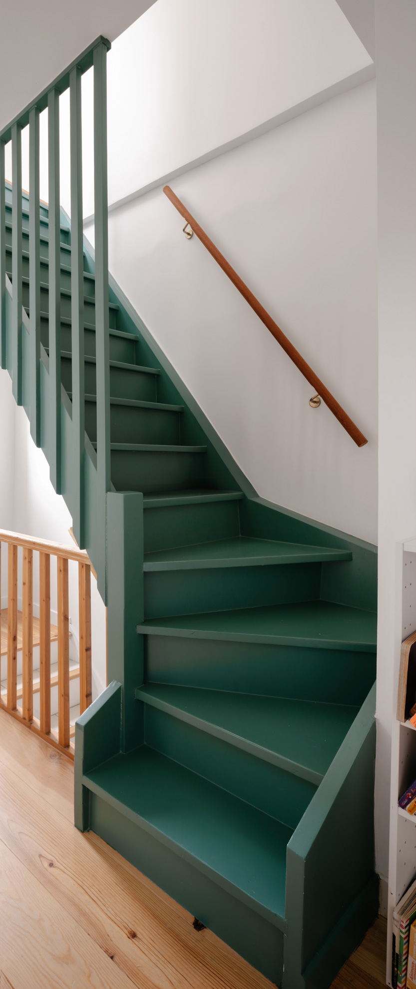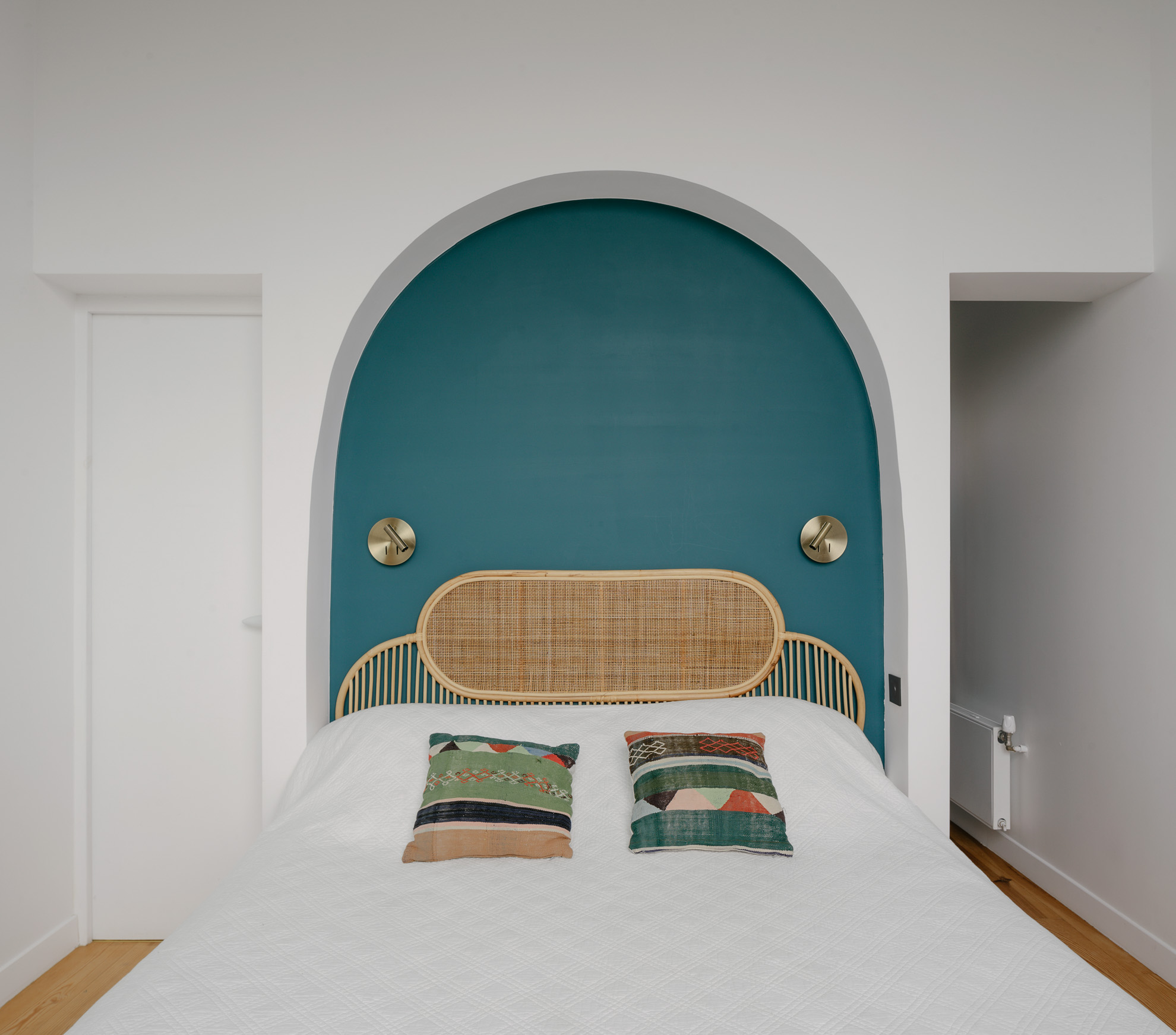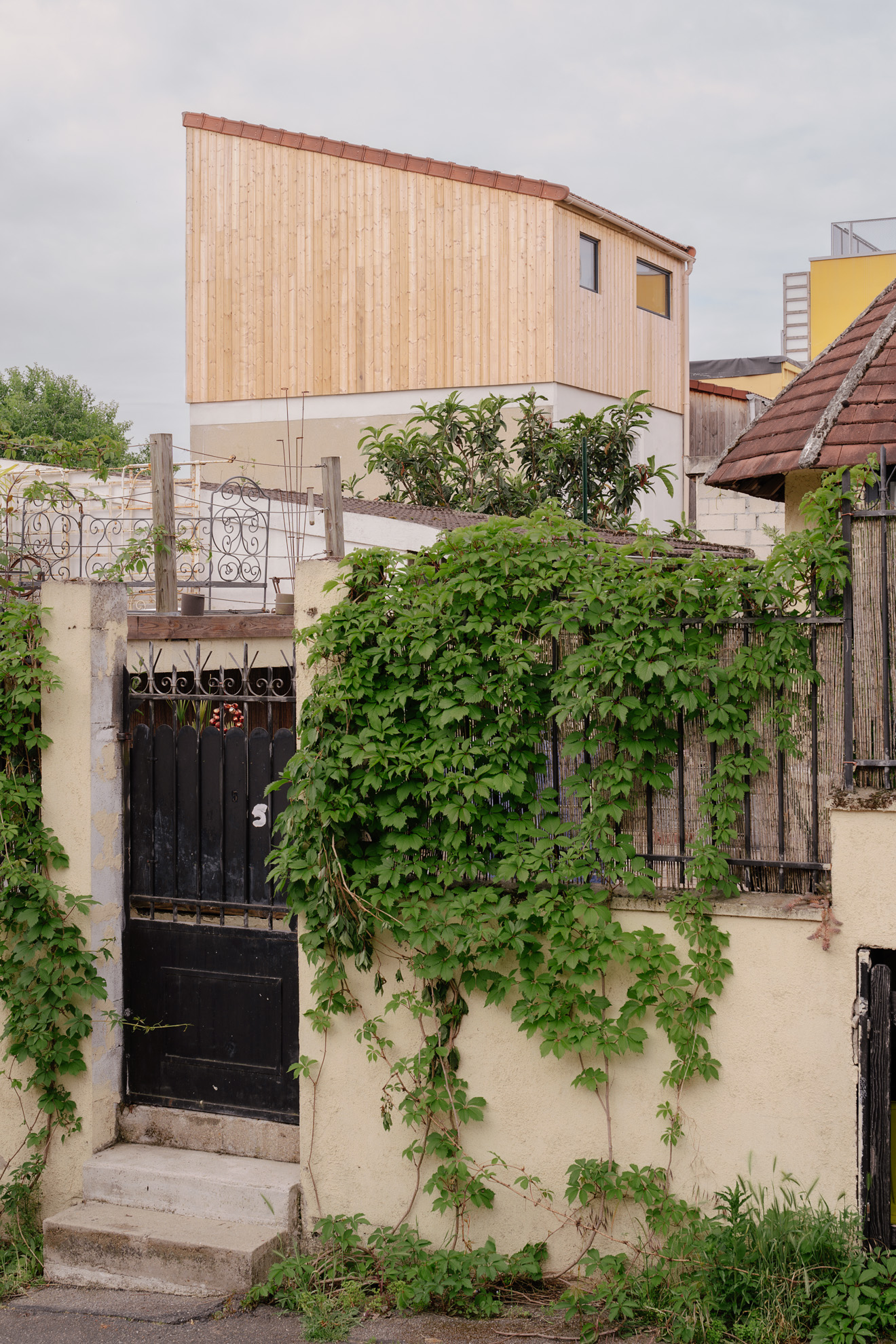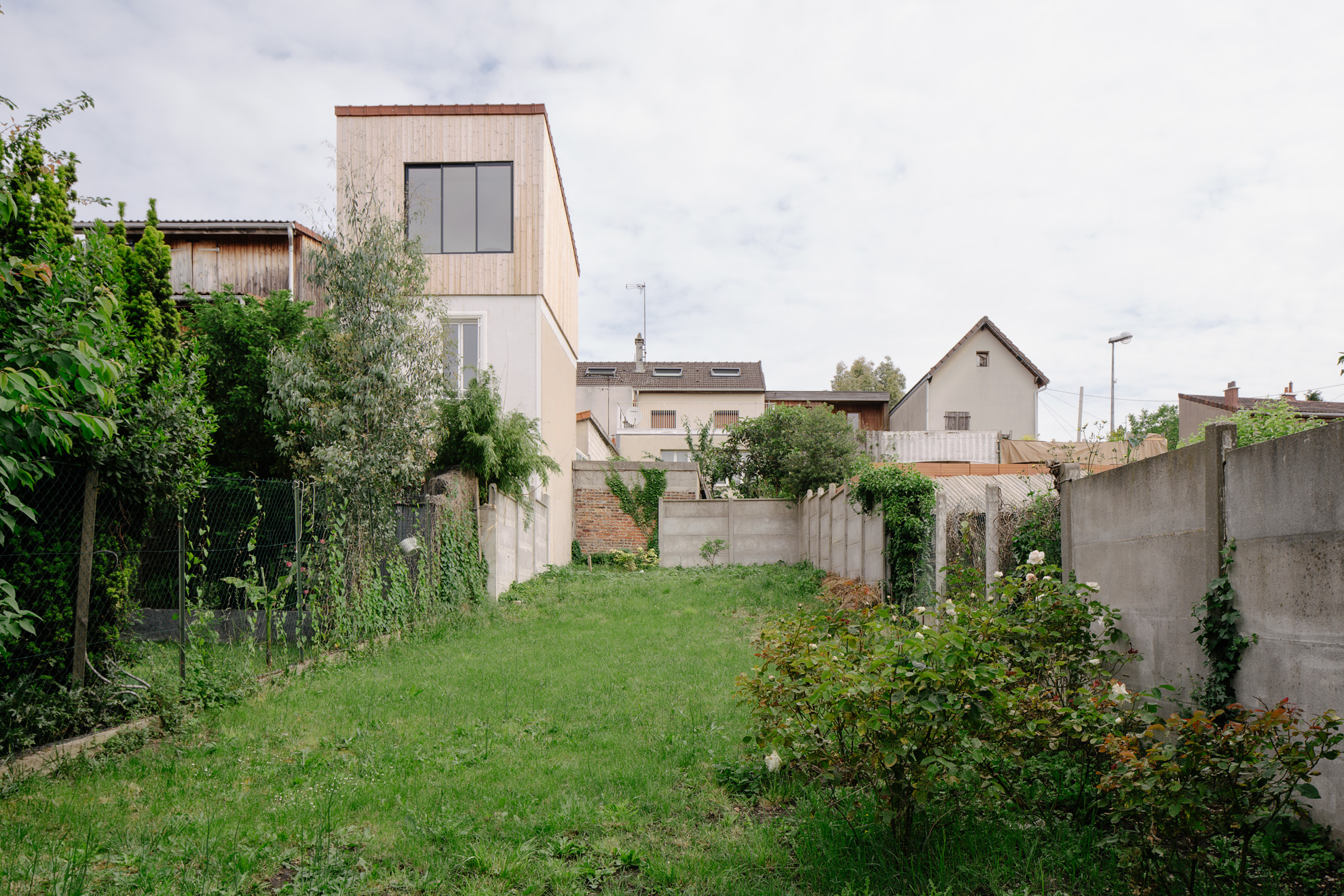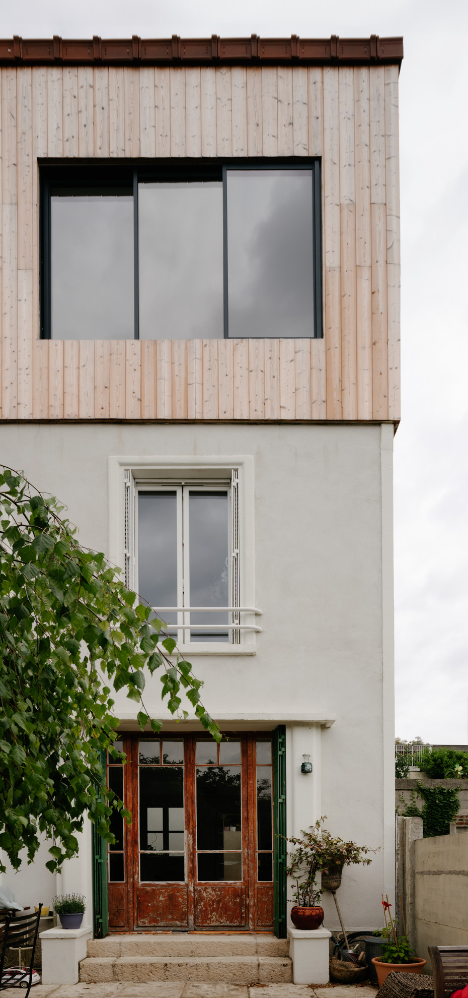 Cette surélévation incarne notre vision d’une architecture responsable et contemporaine. Créée pour accueillir une suite parentale complète, elle se fond naturellement dans le paysage urbain tout en offrant une expérience unique à ses habitants. La chambre principale, dotée d’une baie vitrée généreuse, crée un dialogue poétique avec le ciel.