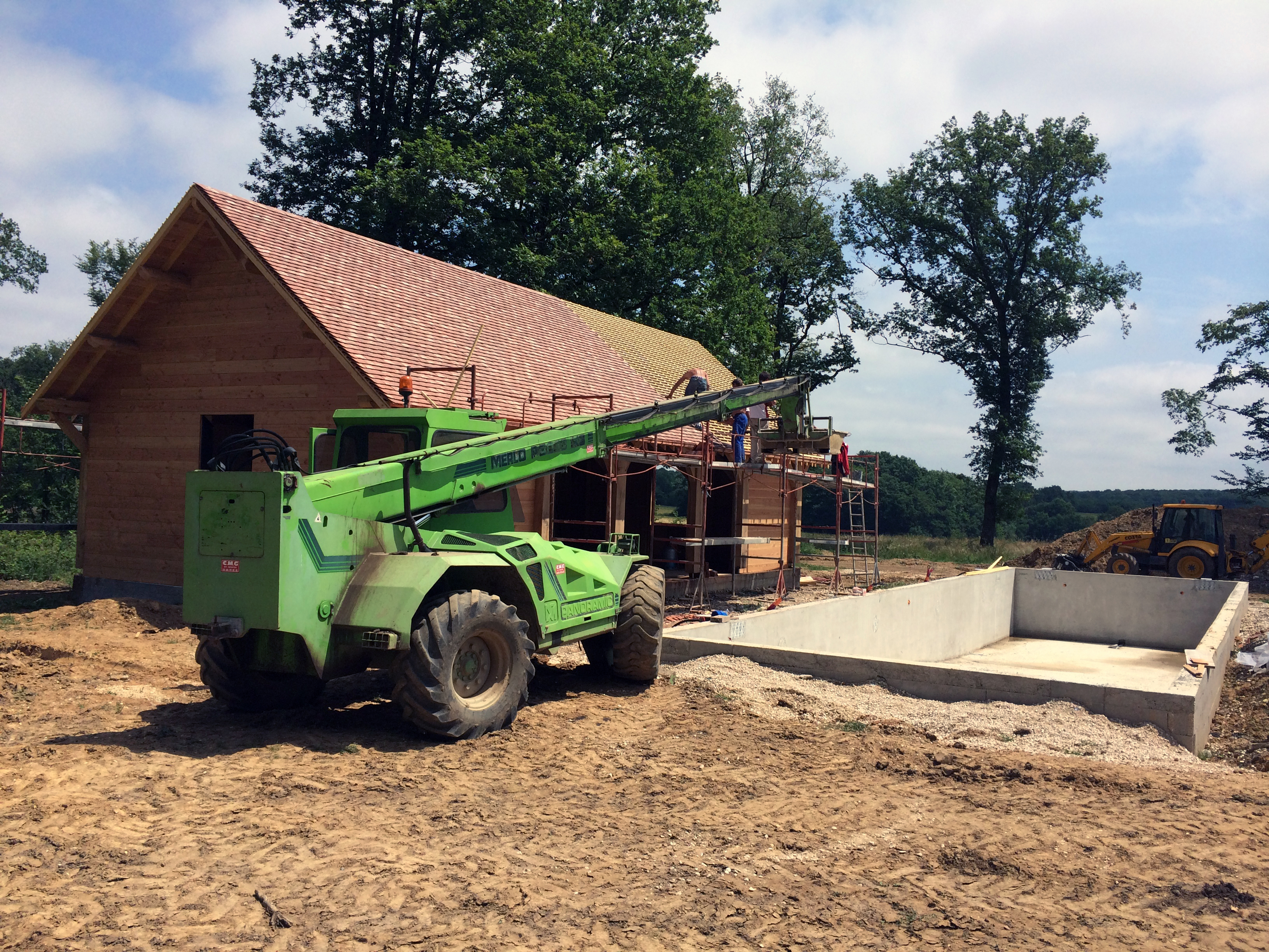 Les nouvelles constructions – pool house et boxes pour chevaux – prolongent cette philosophie avec une ossature en douglas local, issu d’une scierie située à seulement 30 kilomètres, réduisant ainsi l’empreinte carbone du chantier tout en soutenant l’économie locale.