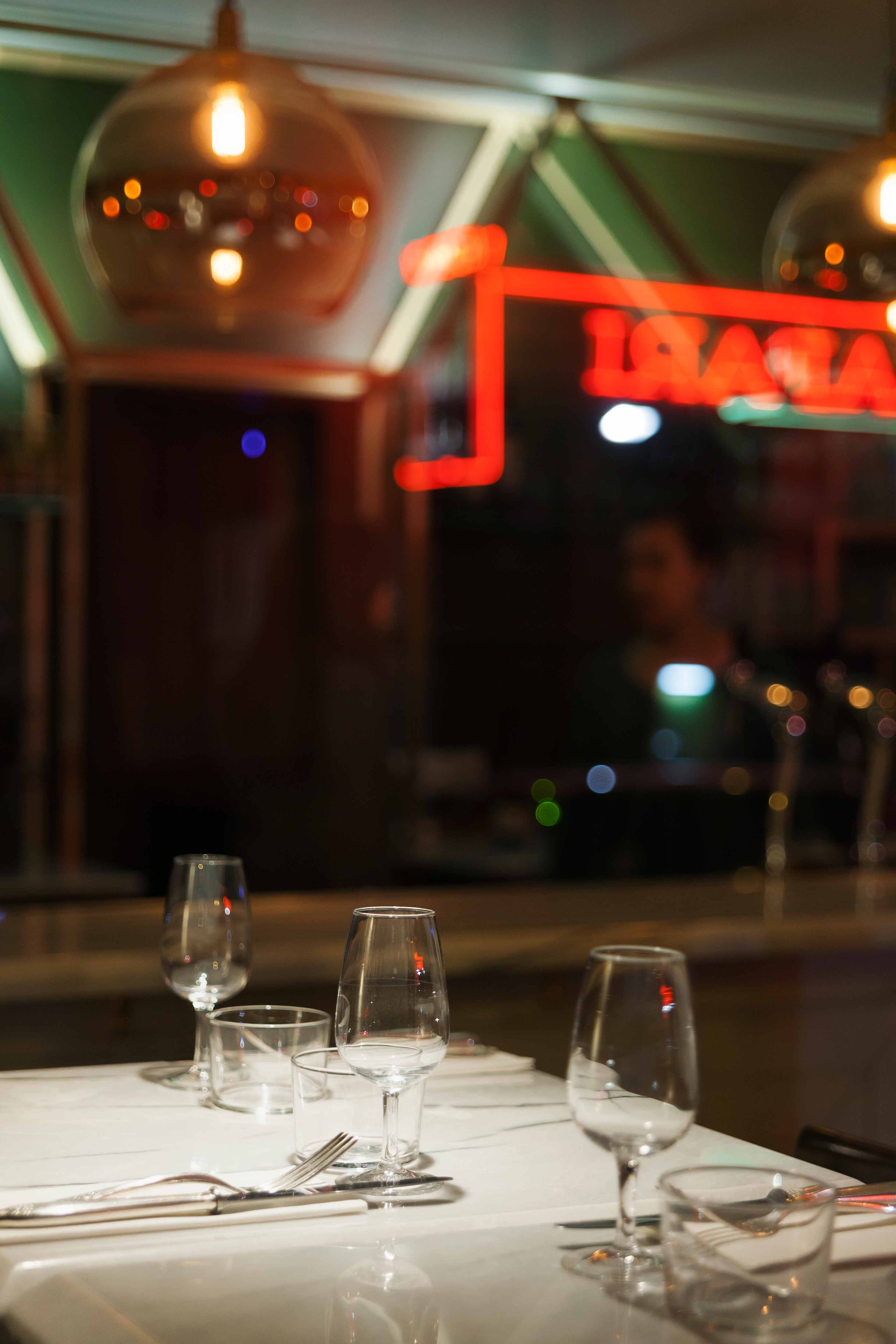 Dans ce restaurant de 45m², nous avons exploité la configuration d’angle pour créer un lieu aux atmosphères distinctes mais harmonieusement liées, où chaque façade devient la vitrine d’une ambiance intérieure unique.